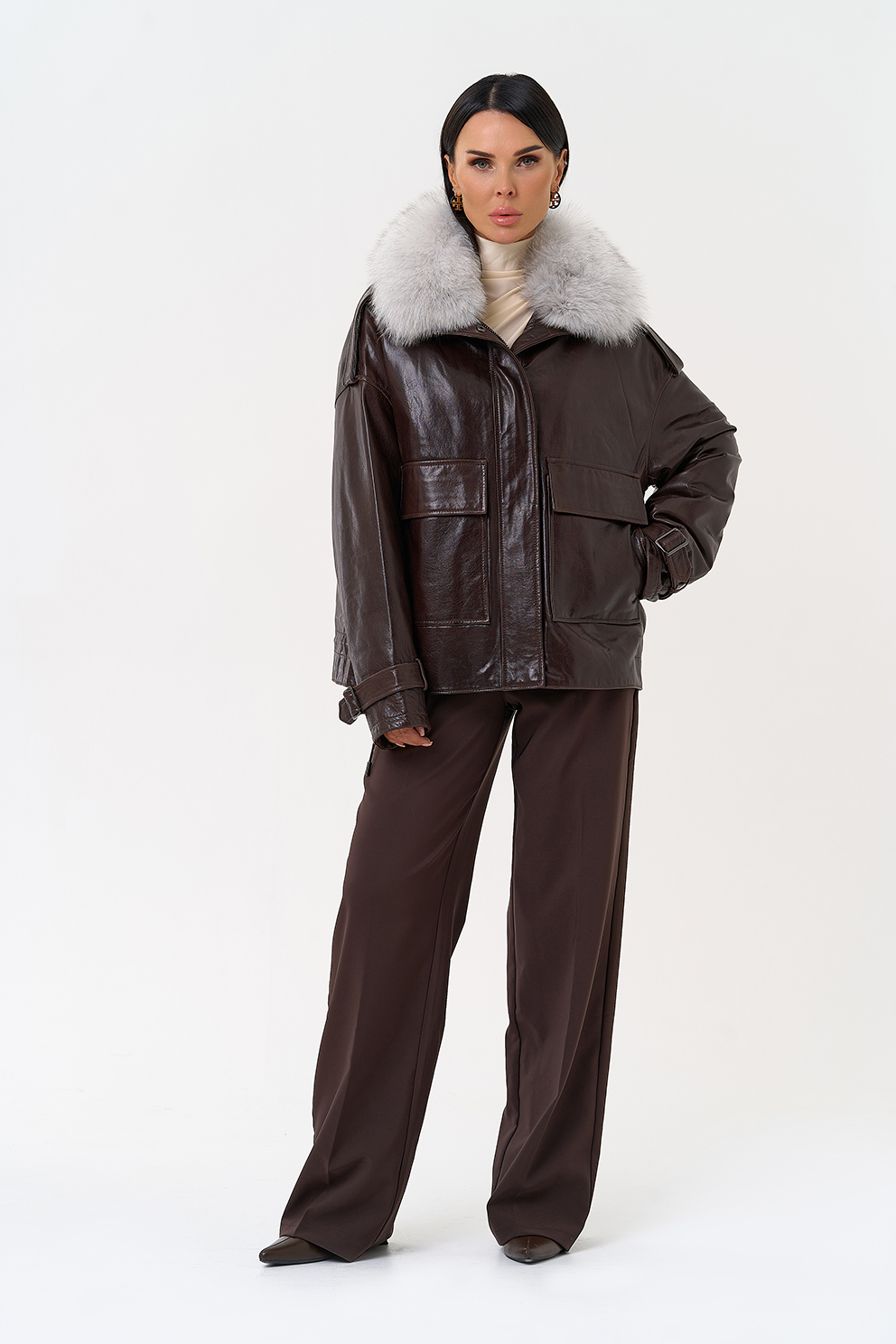 Тип ворота - отложной воротник, отделка песец