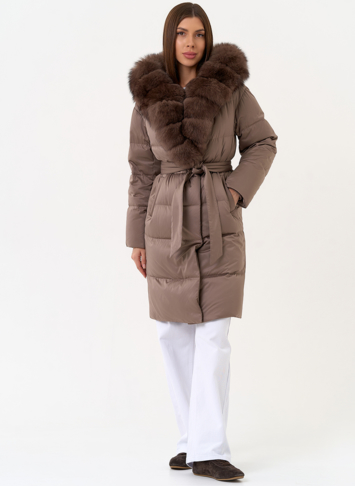 Крой воротника - капюшон, отделка мех песца